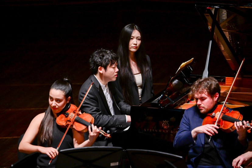 张昊辰在采访中透露了一个小插曲。小提琴家马克・布赫科夫、莉尔・瓦金斯基所乘航班因风暴延误,于演出当日凌晨抵达深圳,在简短休息数小时后便与中提琴家蒂莫西・里多特、大提琴家丹尼尔・米特尼茨基和从欧洲赶来的张昊辰汇合。然而正是这份“非常规”催生了舞台上的鲜活张力,顶尖艺术家在有限时间中凭借深厚修养达成了即兴式的深度共鸣。演出中,五声部如精密齿轮咬合,层层推进至辉煌高潮,观众席爆发出近乎本能的热烈掌声。张昊辰坦言,选择舒曼五重奏恰因其“熟悉度”可保障短时排练下的艺术完整性,但结果远超技术层面——那是音乐家之间无需言语的信任,也是一种令演奏者十分享受的化学反应。
